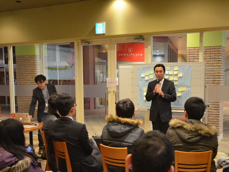 市長が選んだテーマは「観光」。観光について足利市が行っていることなどを市長から話して頂き、その後、参加者からテーマに沿った質疑応答という流れで進めました。参加者の半分くらいは若い世代ということもあり、市長が今までに聞いたことないような新しい意見が出たそうです。